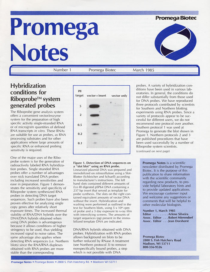 1st issue of Promega Notes published